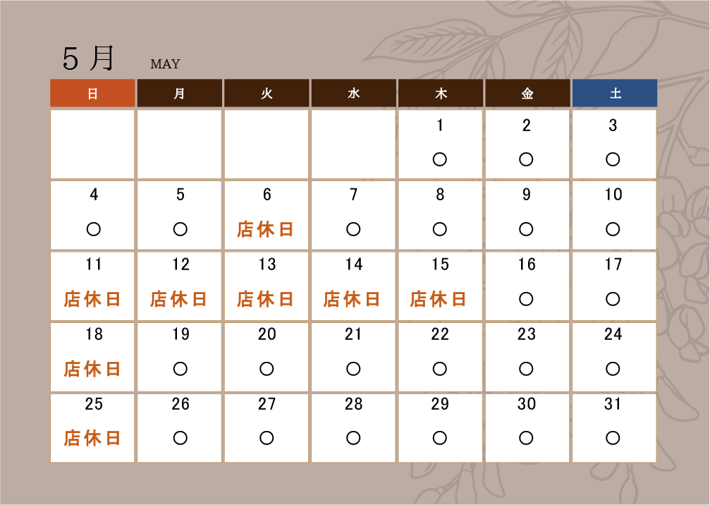 6月の営業日のお知らせです。今月は通常通り、日曜店休日での営業になります。皆様のご来店をお待ちして...